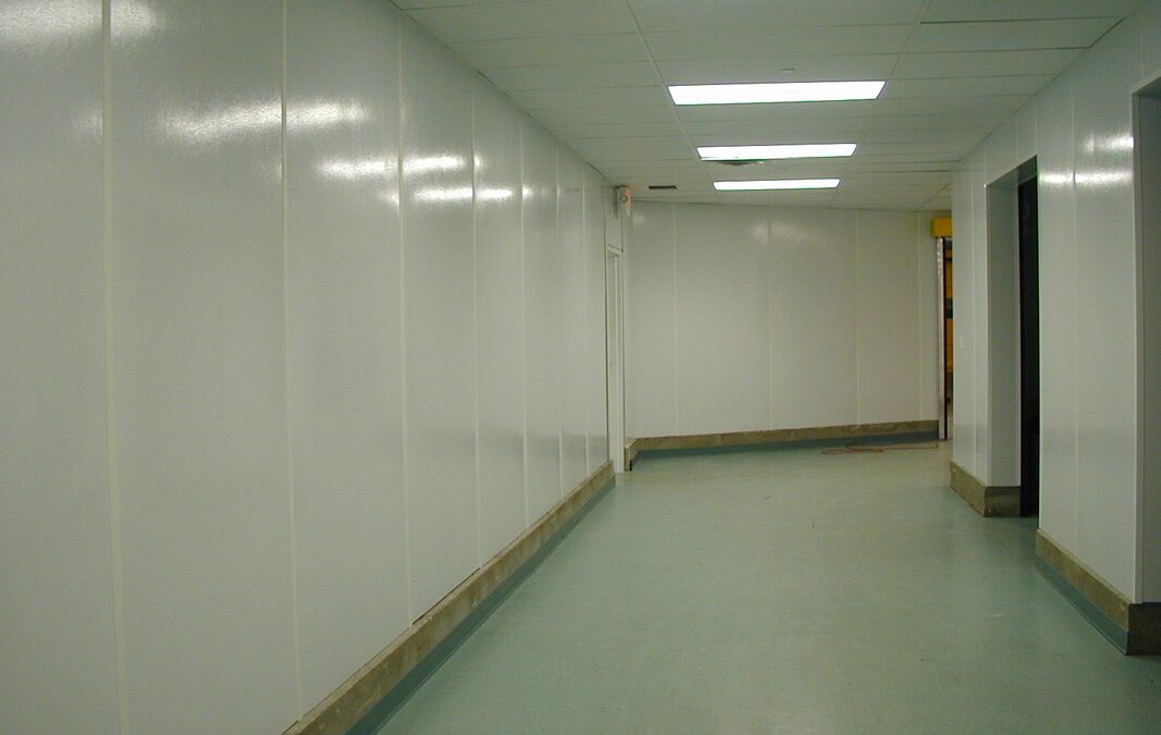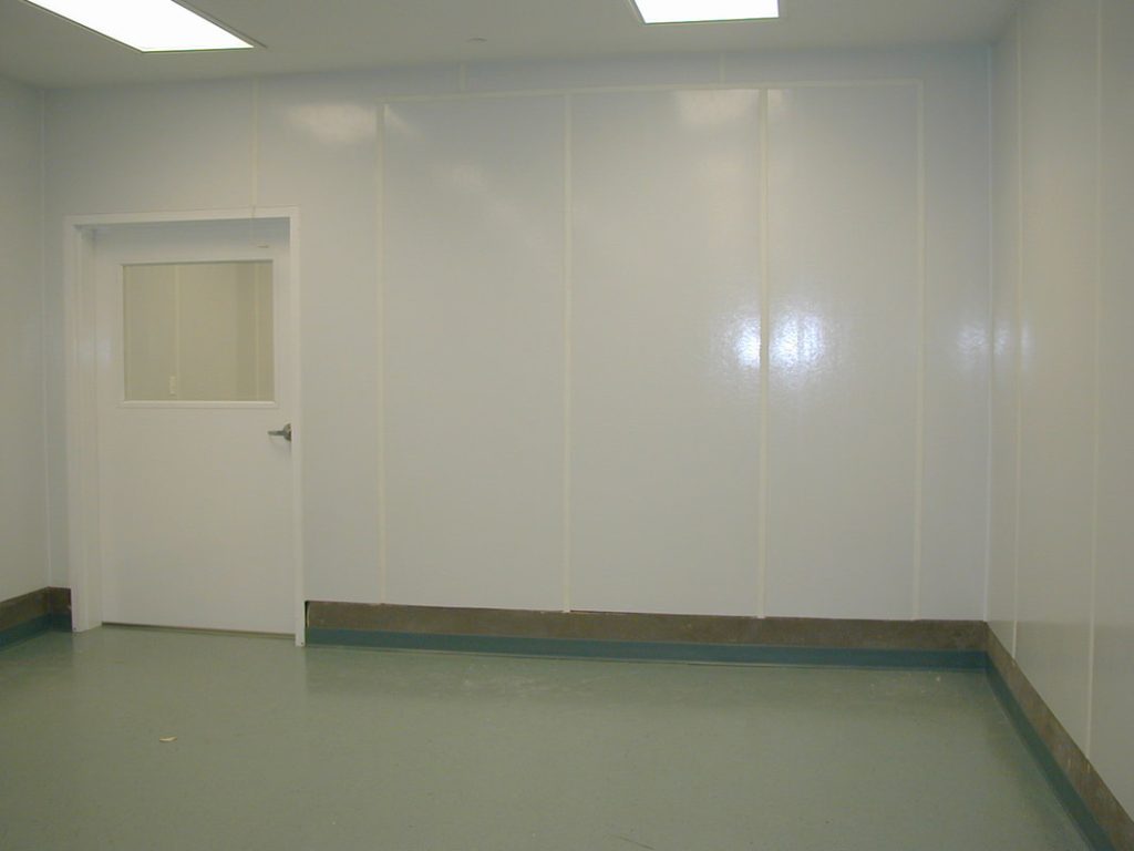 - Cleanroom construction with durable, non-shedding, particle-free, non-gypsum board or wood core panels, such as a PVC or FRP panel mounted on either a corrugated plastic core or HDPE core material